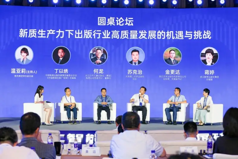 会上,中国新闻出版传媒集团编委会主任、《中国新闻出版广电报》总编辑丁以绣,长江少年儿童出版社(集团)有限公司党委书记、董事长何龙,浙江教育出版社集团总编辑蒋婷,大连理工大学出版社社长苏克治,浙江大学出版社有限责任公司总经理、党委副书记金更达,数传集团常务副总裁温亚莉围绕“新质生产力下出版行业高质量发展的机遇与挑战”展开讨论,深度探讨出版业在AIGC领域的“新”实践等。